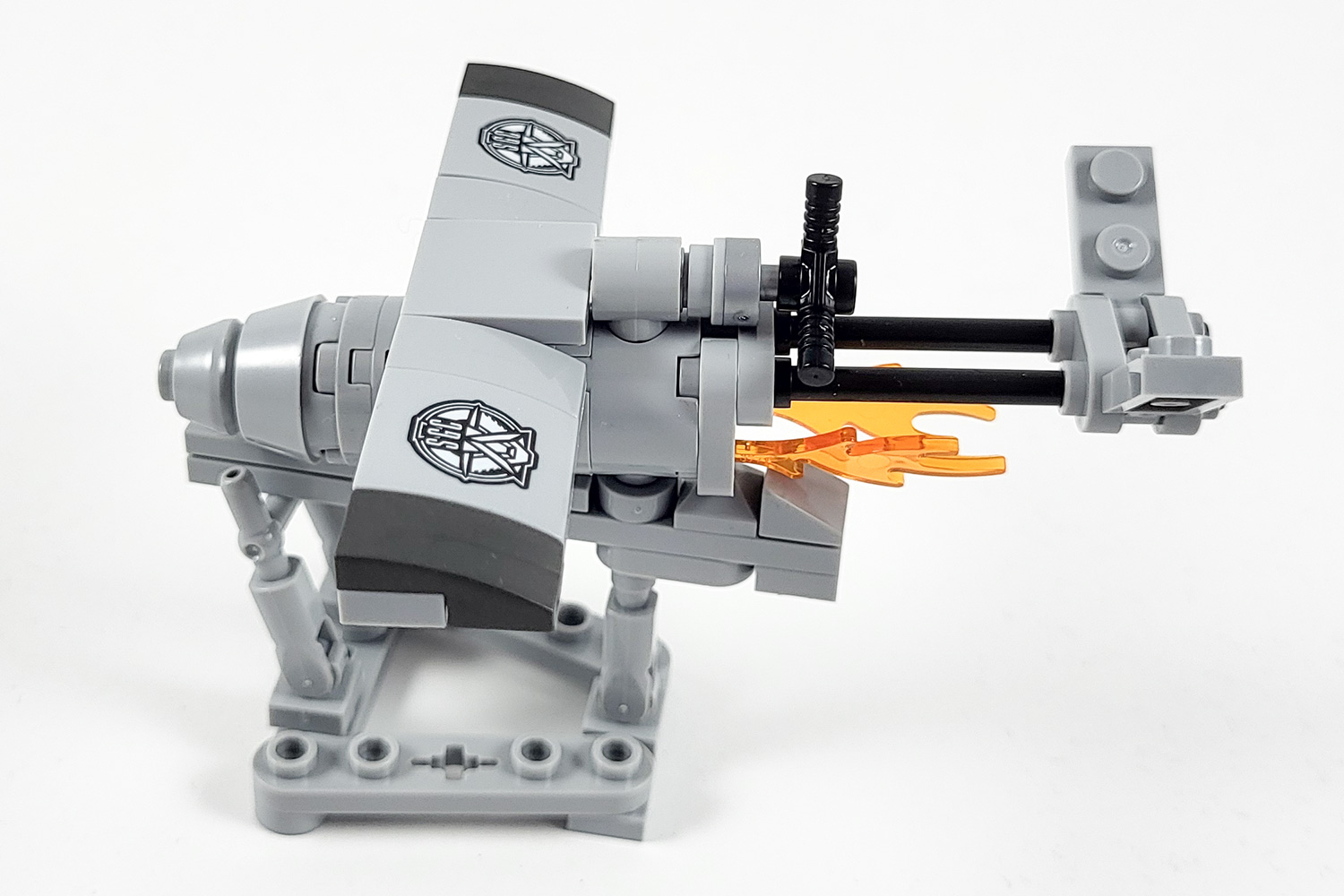 Im achten Bauabschnitt werden nur noch Details, wie die beiden fest installierten Maschinengewehre, welche den Torraum schützen sollen, sowie die MALP gebaut. Das steht für Mobile Analytic Laboratory Probe und ist ein Gerät, welches als Erkundungsdrohne eingesetzt wird und zunächst nur als fahrende Drohne existiert, später in der Serie aber auch als Flugdrohne zum Einsatz kommt. Beide Versionen liegen im Set vor.