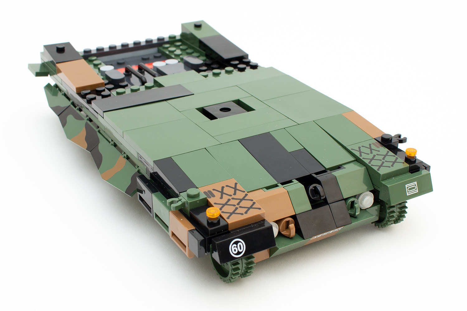 Dabei werden mehrere Dinge sofort deutlich: Für ein Modell mit einer Länge von 30,5 Zentimetern sowie einer Breite und Höhe von jeweils 12 Zentimetern fällt die Teileanzahl recht hoch aus. Dieser Umstand lässt sich darauf zurückführen, dass Cobi das Modell überwiegend mit kleineren Teilen und weniger mit großen Steinen umgesetzt hat. Dies wirkt sich vor allem bei der farblichen Umsetzung der Tarnung aus, welche im Gegensatz zu anderen Herstellern von Modellen des vorgestellten Panzers am Ende deutlich realistischer ausfällt.