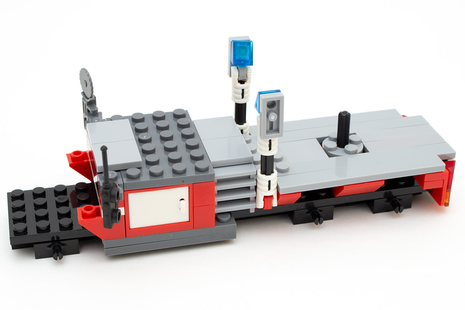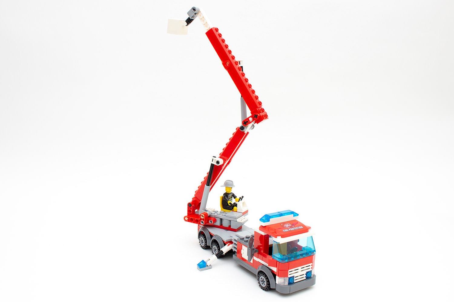 Die meiste Zeit des rund 50 minütigen Bauvorganges bleibt ohne spektakuläre Zwischenfälle, lediglich bei der Fertigung des Hebearms muss genau hingesehen werden. Leider können jedoch die mitgelieferten 8er-Achsen das Gewicht der Formteile nicht halten, sodass der Ausleger nicht im ausgefahrenen Zustand verharrt. Ein Austausch mit originalen Lego-Achsen machte das ganze Konstrukt etwas stabiler und beseitigte das Problem. Wie es sich beim Original verhalten hat, kann aus Ermangelung des Modells nicht in Erfahrung gebracht werden.