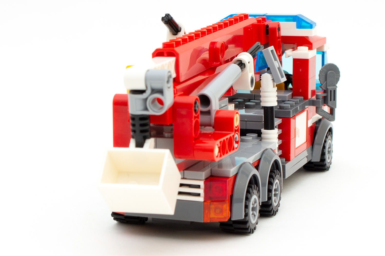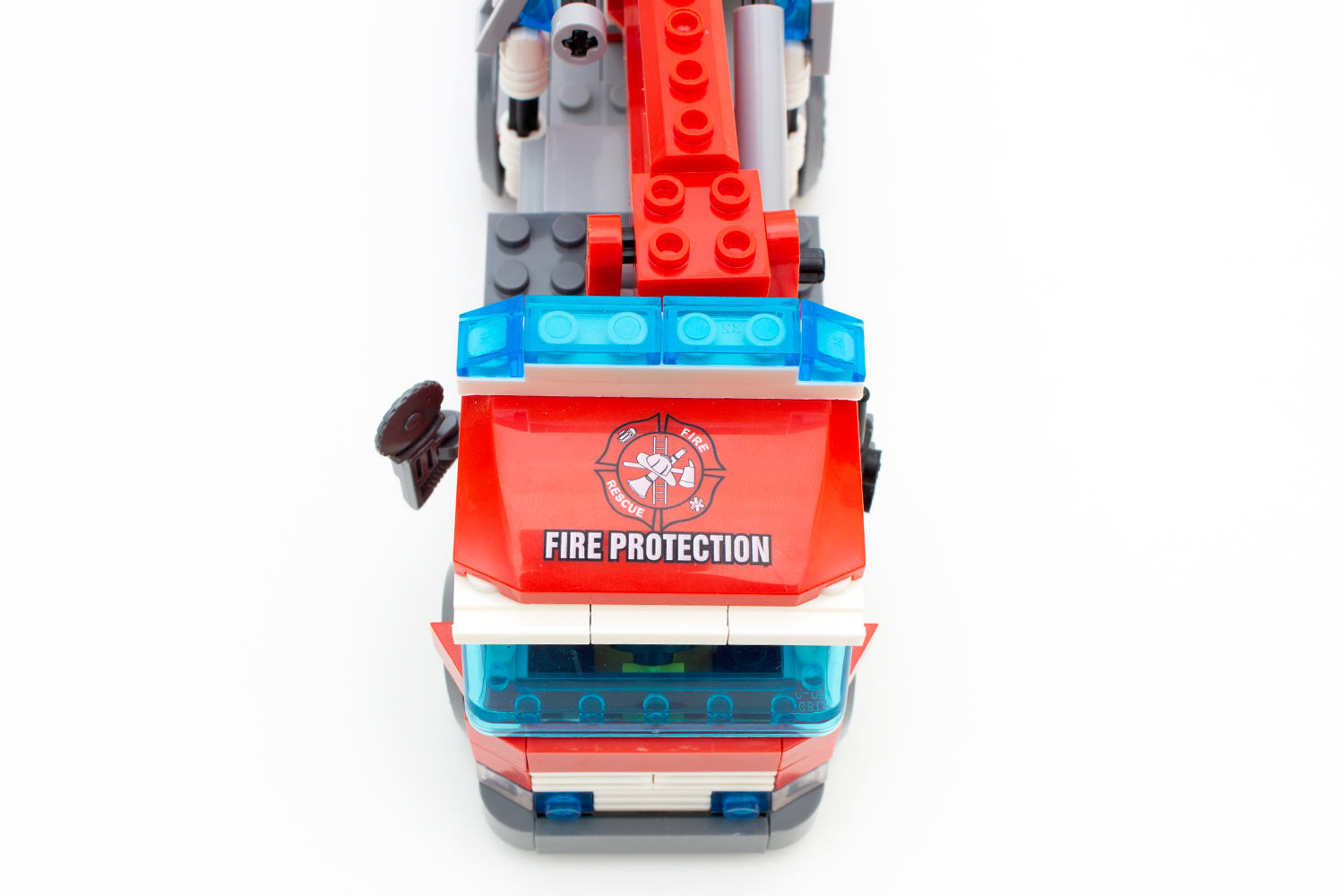Dies bleibt jedoch die einzige Stelle, an der etwas mehr Geduld aufgebracht werden muss. Nach 50 Minuten – Kinder dürften etwas länger benötigten – ist der Feuerwehrwagen fertiggestellt. Wie bereits beim Kranwagen fallen auch bei diesem die Reifen deutlich weicher aus, womit diese spürbar mehr Haftung beim Spielen besitzen und nicht über den Boden holpern.