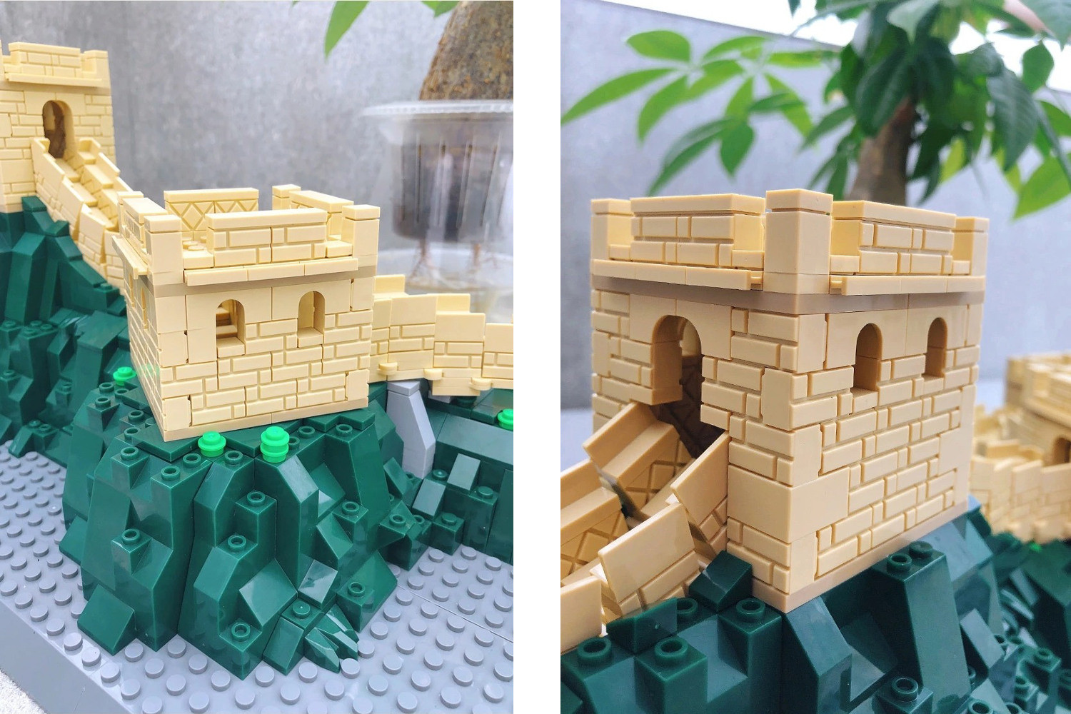 Die chinesische Mauer ist mit einer Länge von über 21.000 km ein Bauwerk gigantischer Größe. Diese Maße werden in dem Set zwar nicht erreicht, aber es braucht sich, in Bezug auf seine Größe, ebenso wenig zu verstecken. Laut Ankündigung des Herstellers wird das Set im aufgebauten Zustand 70,4 cm breit, 23,8 cm tief und 17,6 cm hoch sein und aus 1517 Teilen bestehen. Im Gegensatz zu dem vergleichbaren Set aus der Architektur-Serie von Lego, welches lediglich 2 Türme der Mauer beinhaltet, haben die Designer dem Set vier der Türme spendiert.