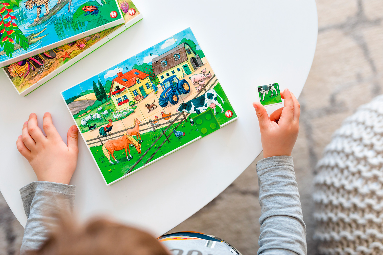 Die vier ersten Motive „Feuerwehr-Einsatz“, „Bunte Unterwasserwelt“, „Tierwelt im tropischen Regenwald“ sowie „Leben auf dem Bauernhof“ sind ab sofort zu einer UVP von 19,99 Euro erhältlich. Weitere Motive sollen im Herbst dieses Jahres folgen.