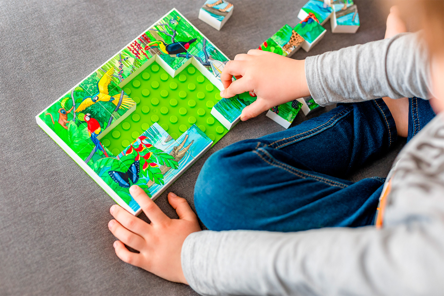 Jedes der Sets besteht aus 35 bedruckten 2 × 2 Noppen großen Steinen im Duplo-Format sowie der dazugehörigen Grundplatte. Durch ihre Größe sollen die einzelnen Teile auch von kleineren Händen sowie Puzzle-Anfängern sowohl gut und einfach zusammengesetzt als auch wieder gelöst werden können. Das bekannte Prinzip soll zudem den Einstieg in die Puzzle-Welt erleichtern.