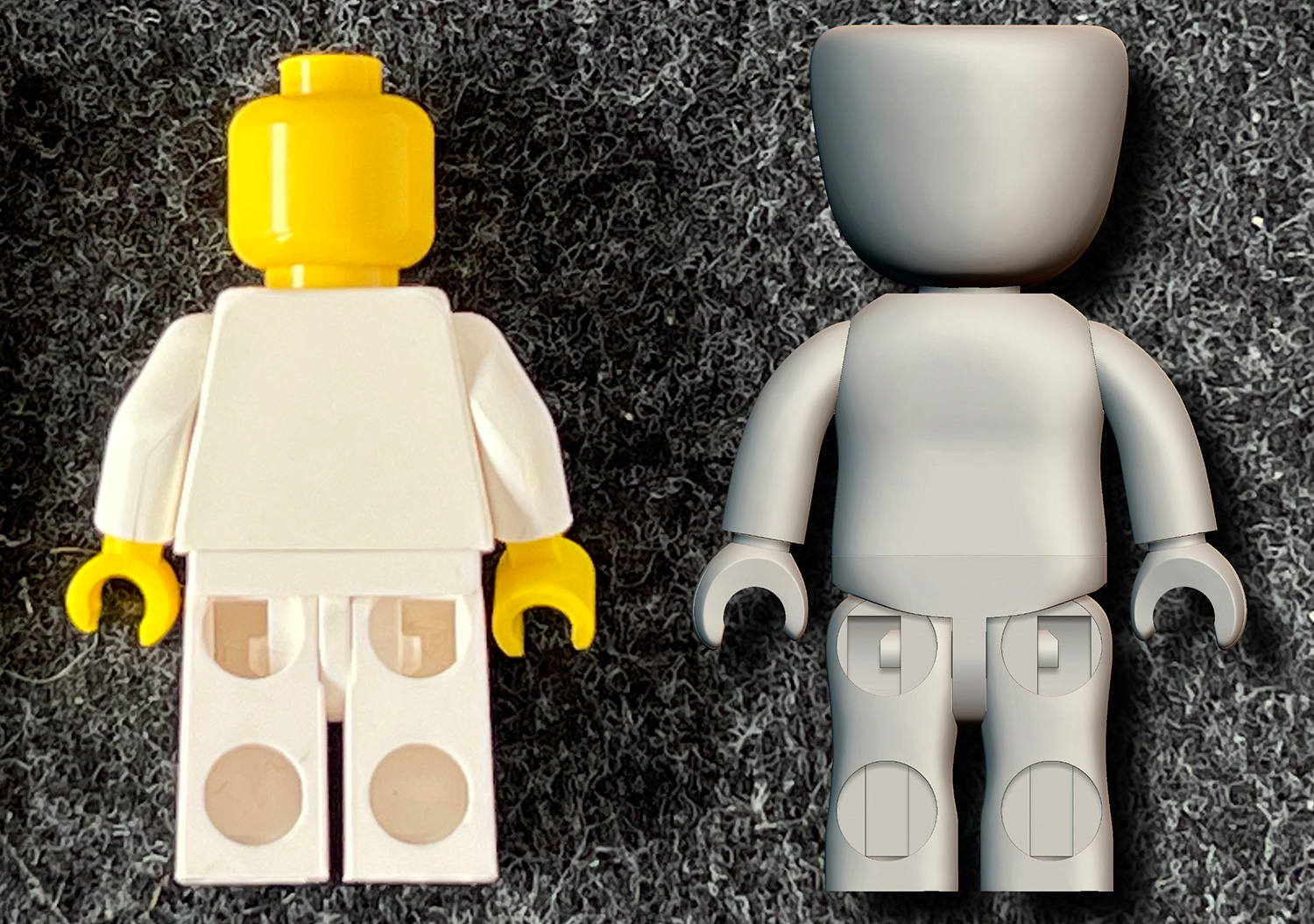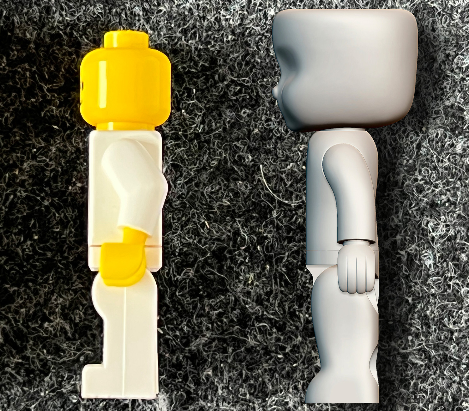 Mittlerweile hat Thorsten Klahold der Redaktion von Just Bricks auch erste Bilder der Figur im Vergleich zum Vertreter des Marktführers zur Verfügung gestellt. Die Kiddicraft-Figur ist auf diesen zwar immer noch nur in gerendeter Form zu sehen, verdeutlicht aber noch einmal die Unterschiede zur Mini-Figur von Lego – auch in Bezug auf die Größe. In den nächsten Schritt werden jetzt Prototypen im 3D-Druck für eventuelle Änderungen erstellt, bevor im Anschluss die ersten Gussformen gefertigt werden können.