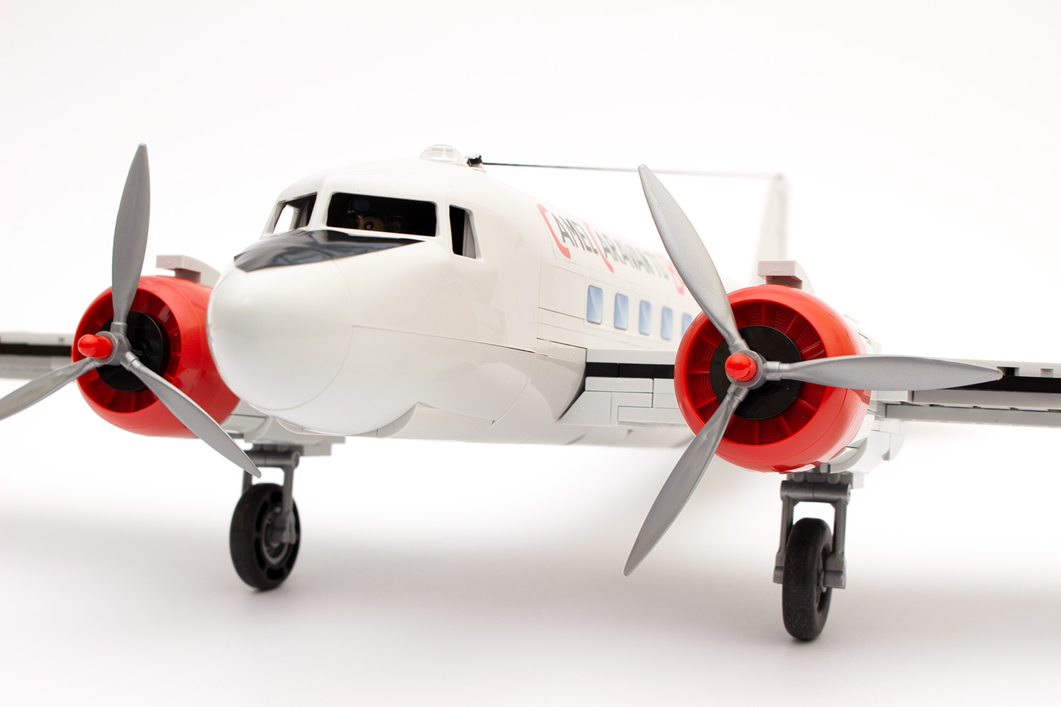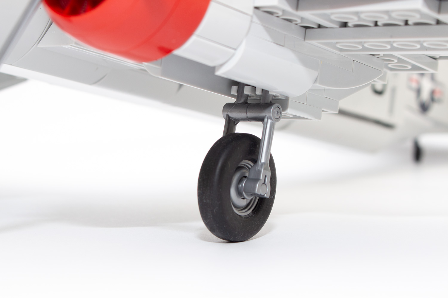Beim Fahrwerk setzt Cobi dagegen zumindest teilweise auf Formteile, damit auch die Stoßdämpfer zum Modell passen. Das Fahrwerk lässt sich zudem wie bei Original nach vorne einfahren. Die Propeller, welcher zuletzt aufgesetzt werden, sind zudem sehr leichtläufig, womit diese bereits anlaufen, wenn das Modell nur etwas schneller durch die Luft bewegt wird.