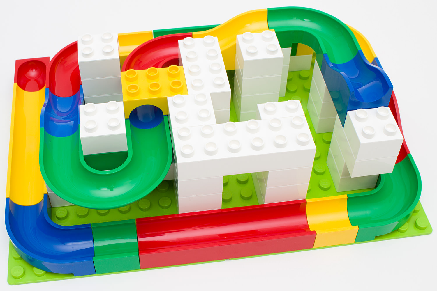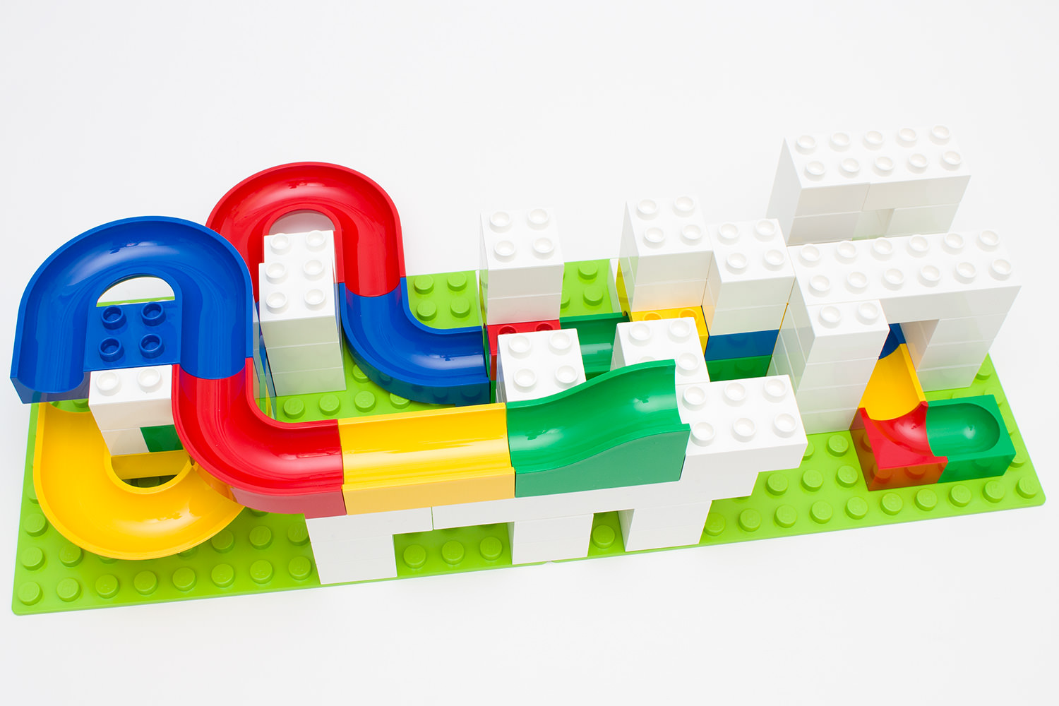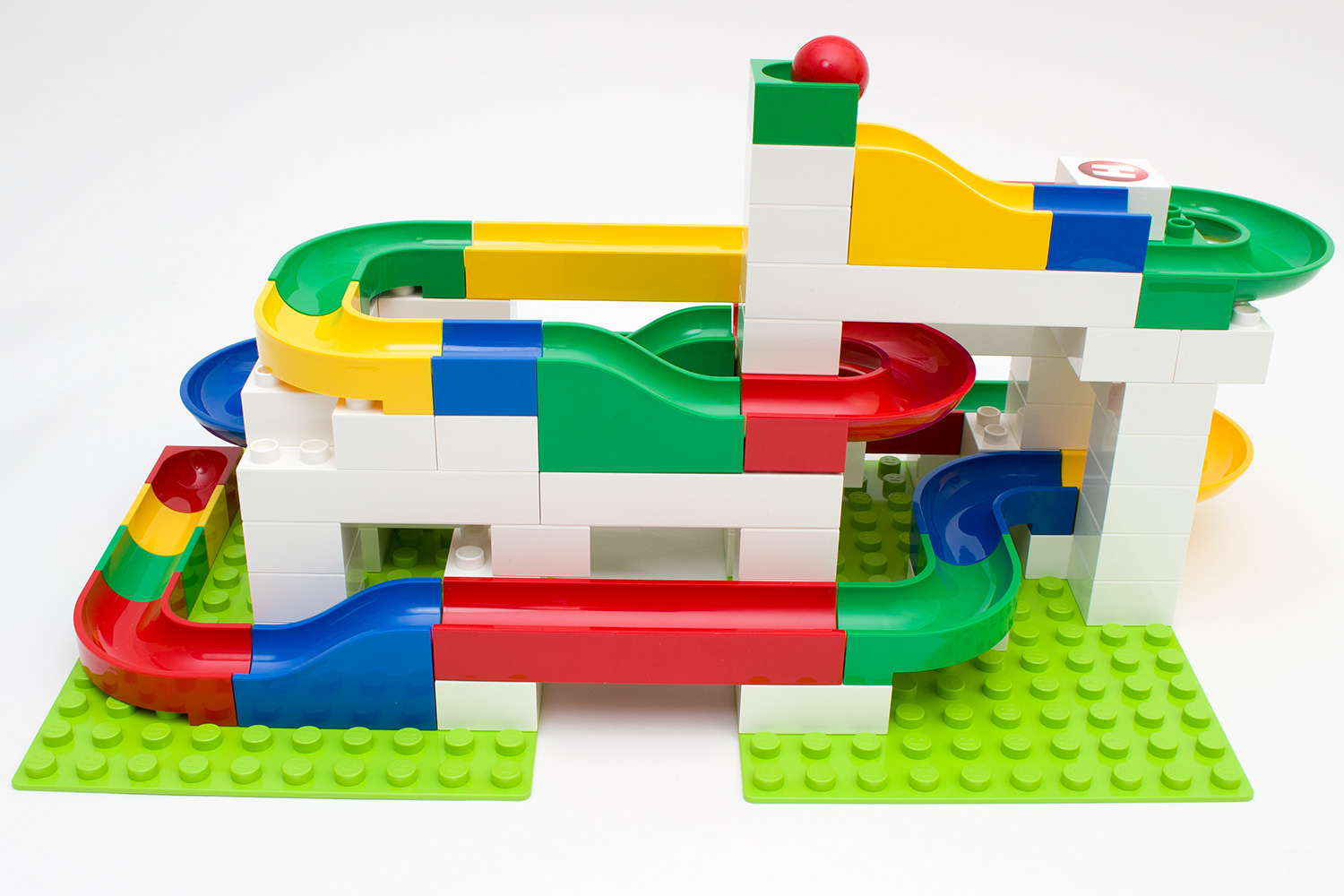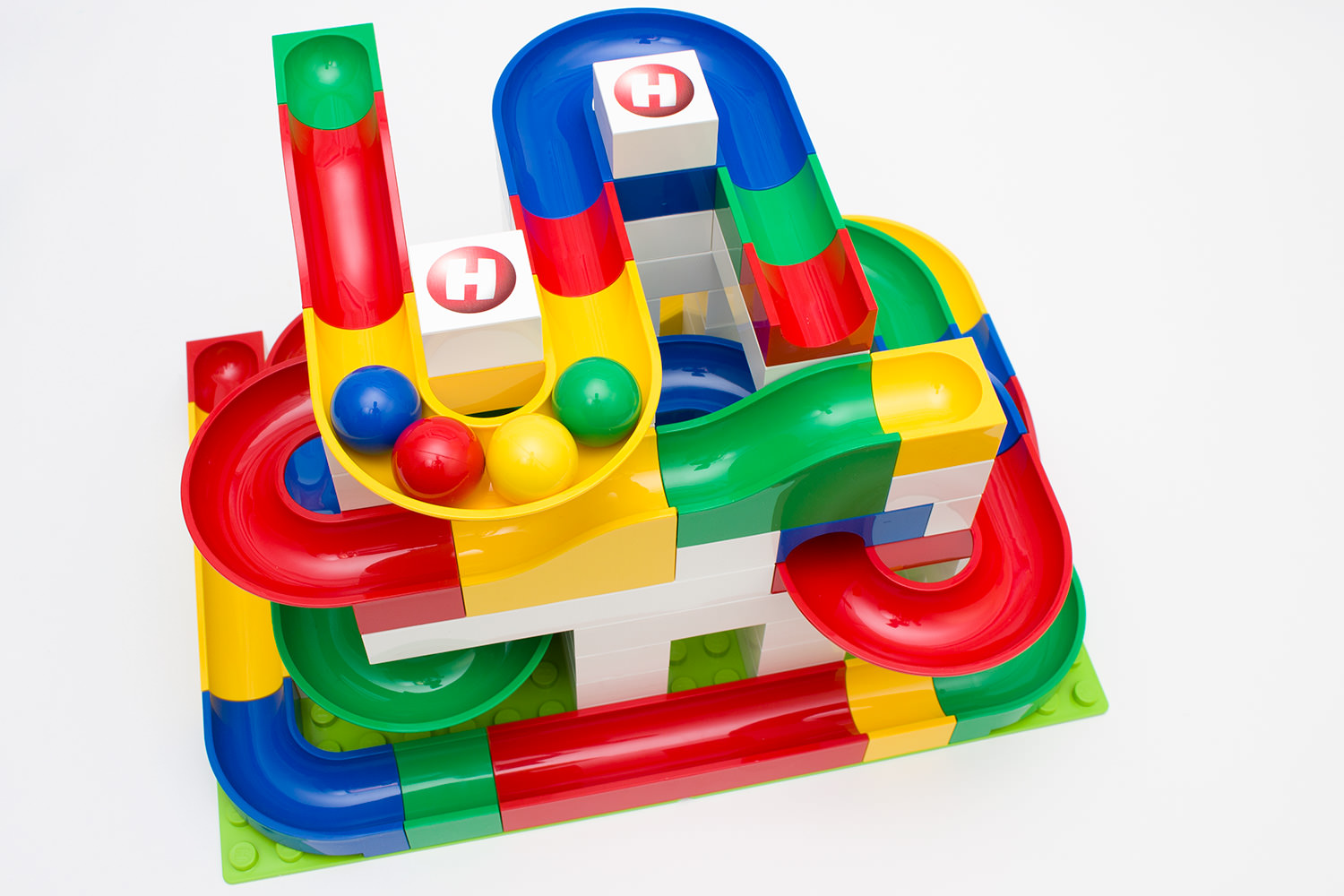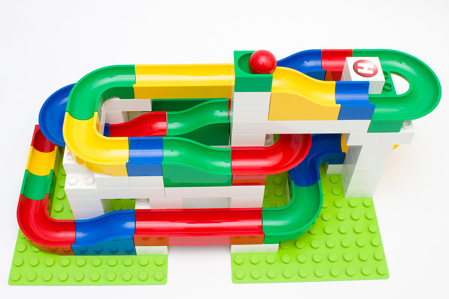 Während klassische Murmelbahnen oftmals nach kurzer Zeit langweilig werden, kann die Kugelbahn von Hubelino immer wieder neu entdeckt und auch in neue oder bestehende Szenarien eingebunden werden: Was spricht dagegen, die Bahn in ein Duplo-Dorf zu verbauen, bei dem ein großer Felsbrocken das Tal hinunterrollt?
