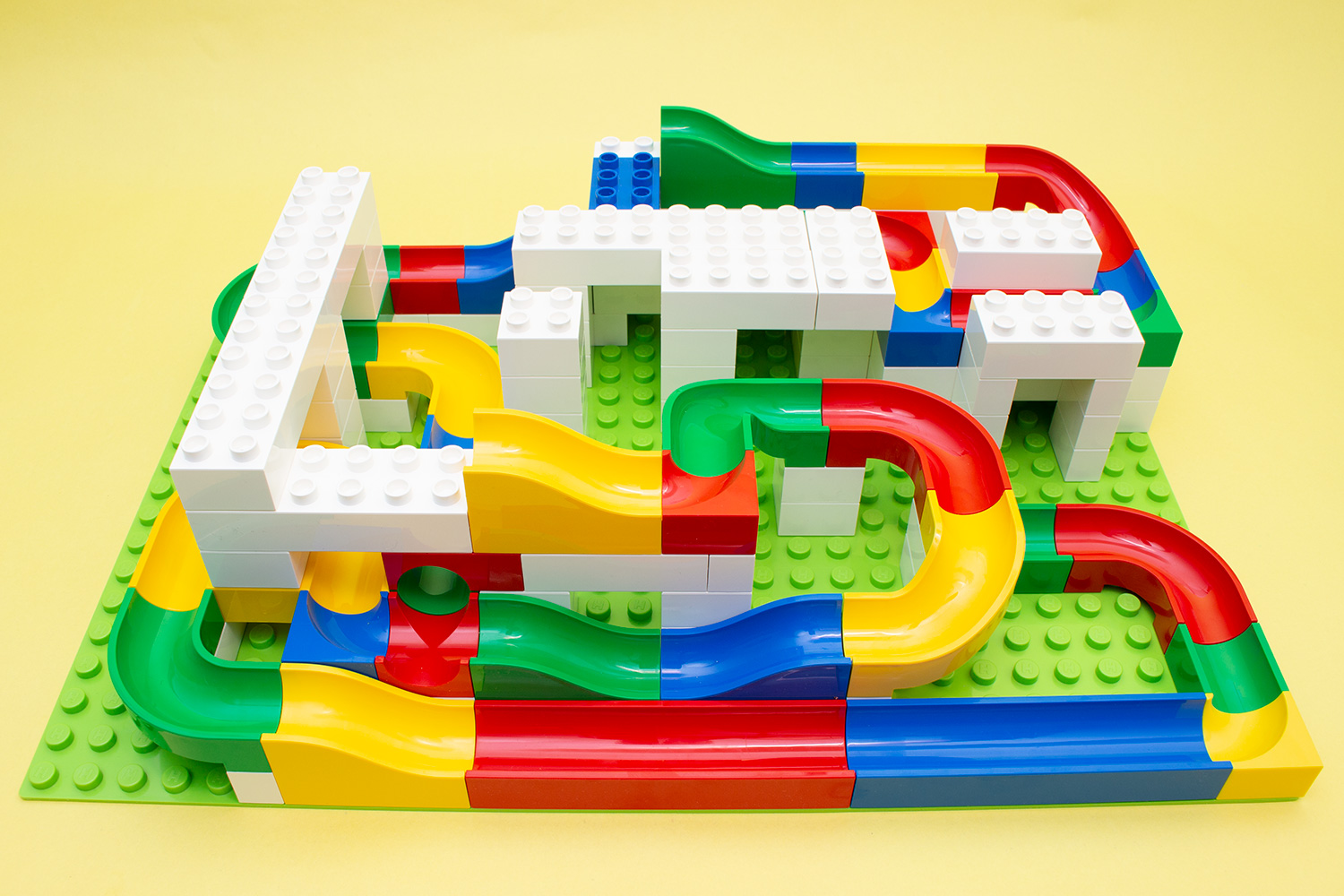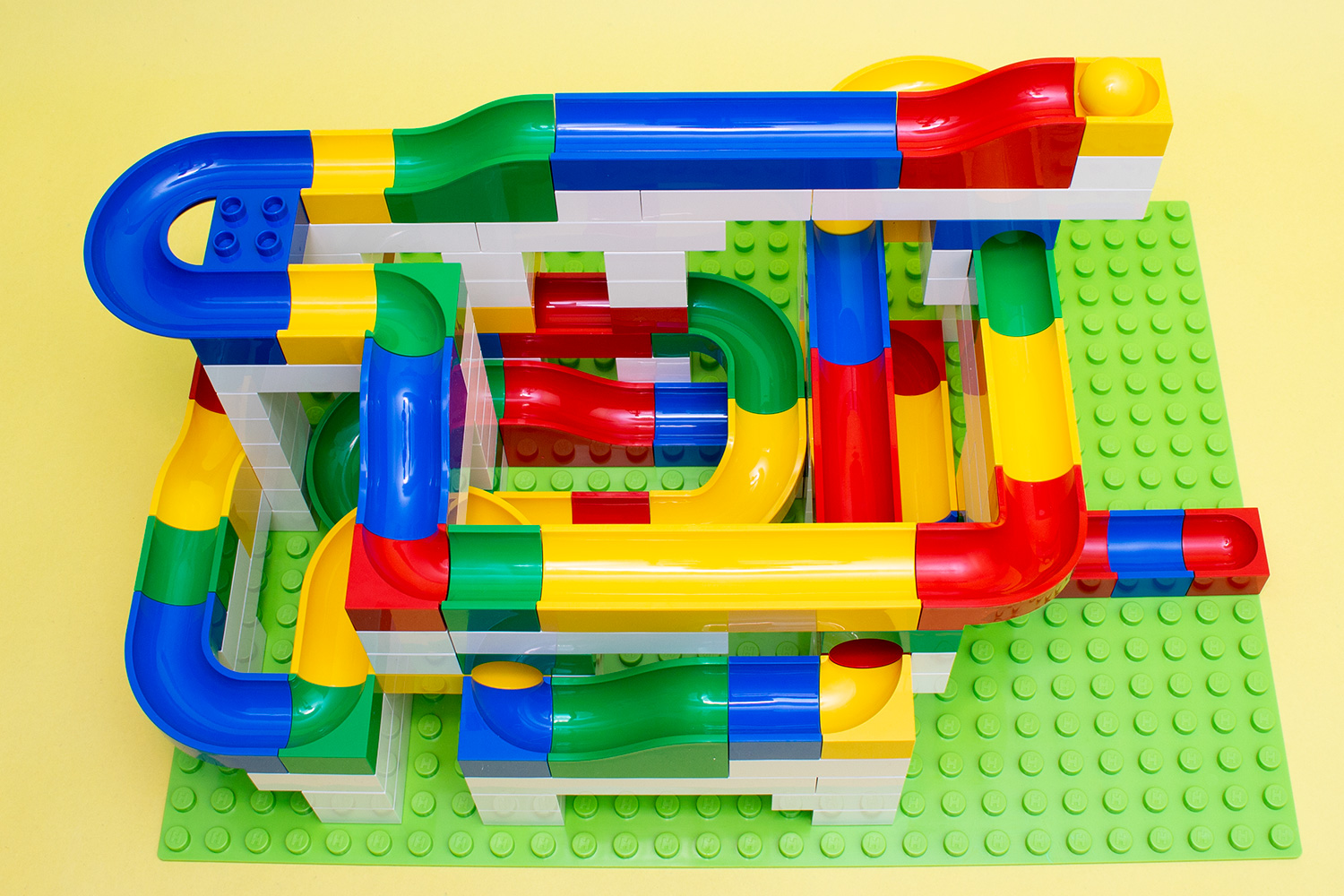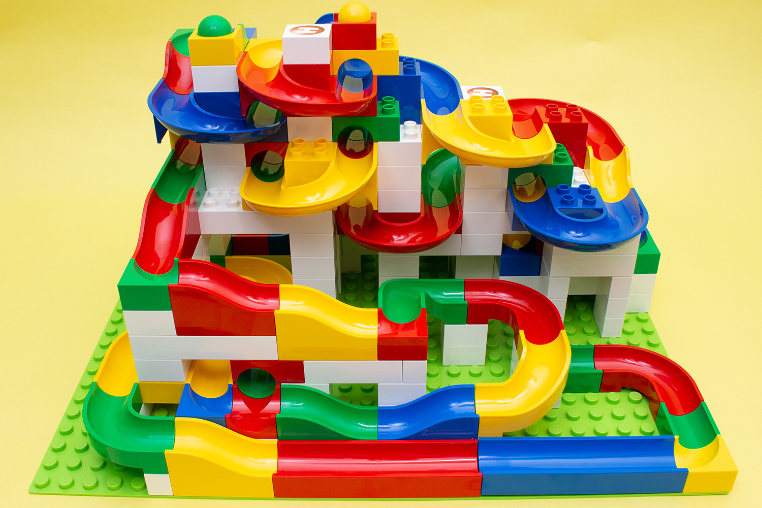 Durch die Kompatibilität zum Duplo-System von Lego lässt sich das Kugelbahnsystem ebenso mit bereits vorhandenen Steinen erweitern, womit Kindern kaum Grenzen gesetzt werden. Genauso können aber auch die vielen weißen Steine, von denen es bei Duplo nur wenige und zudem kaum in unbedruckter Form gibt, auch für andere Bauten verwendet werden.