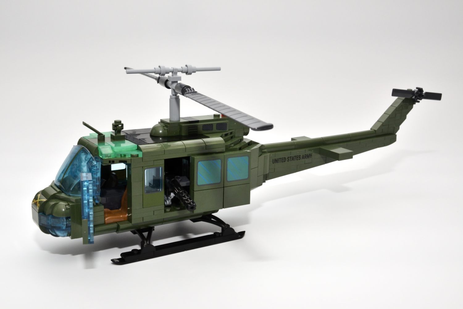 Mit den Hubschraubern der UH-1 Serie hat Bell eine Ikone der militärischen und zivilen Luftfahrt geschaffen. Cobi schafft es, den Charakter des Originals mit kleinen Abstrichen auf ein stimmiges Klemmbaustein-Modell zu übertragen.