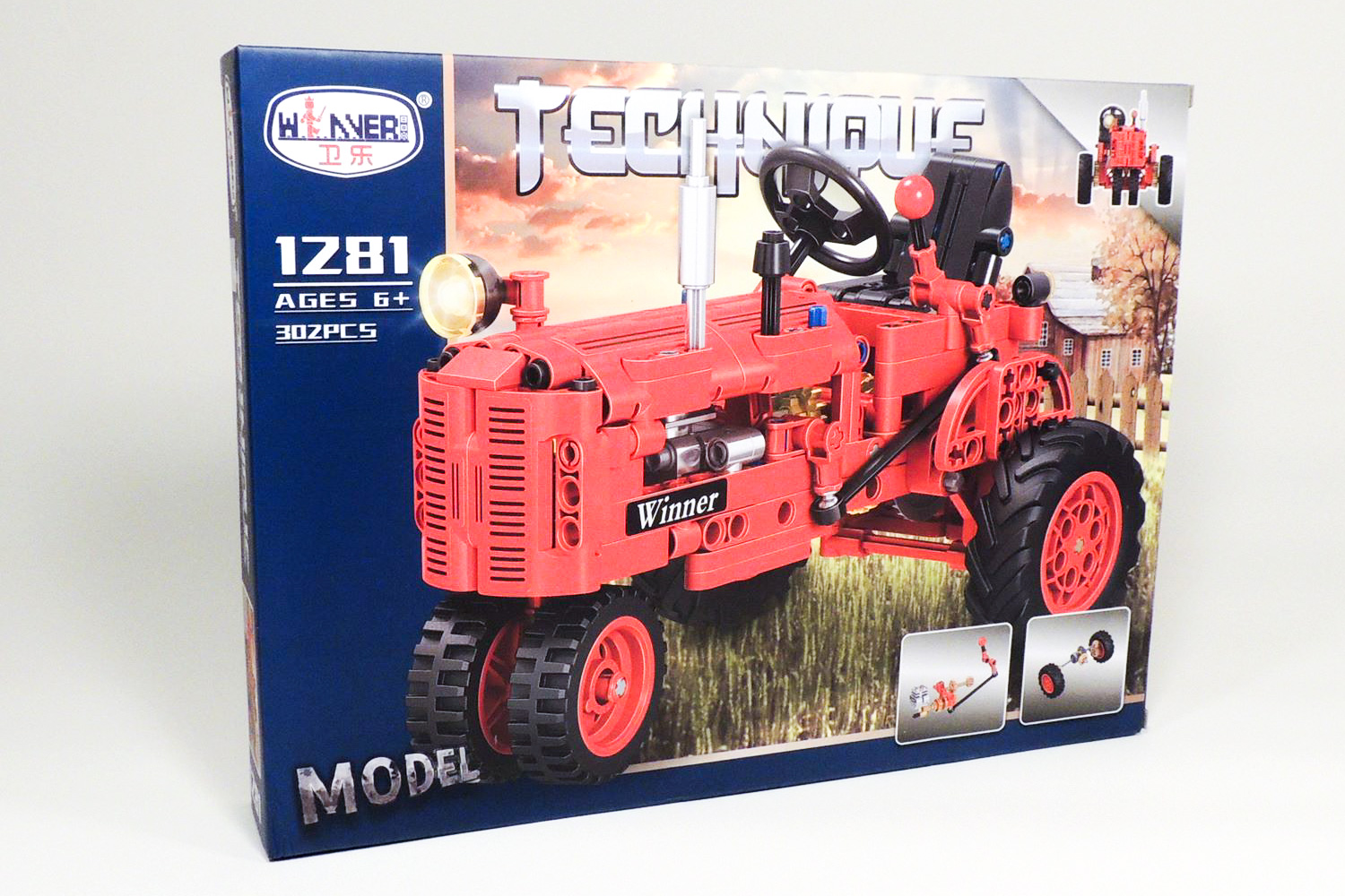 Der chinesische Hersteller Winner bietet mit zwei verschiedenen Set Nummern einen kleinen roten Traktor an, der stark an das Vorkriegsmodell Farmall H angelehnt ist und welcher in origineller Weise mit bewegenden Technic-Funktionen einen gelungenen historischen Schlepper darstellt. Dieser ist in China auch ohne EN-71-Konformität erhältlich, wobei sich die Frage nach den Unterschieden in Ausführung und Steinequalität stellt. Der Versuch eines Vergleiches.