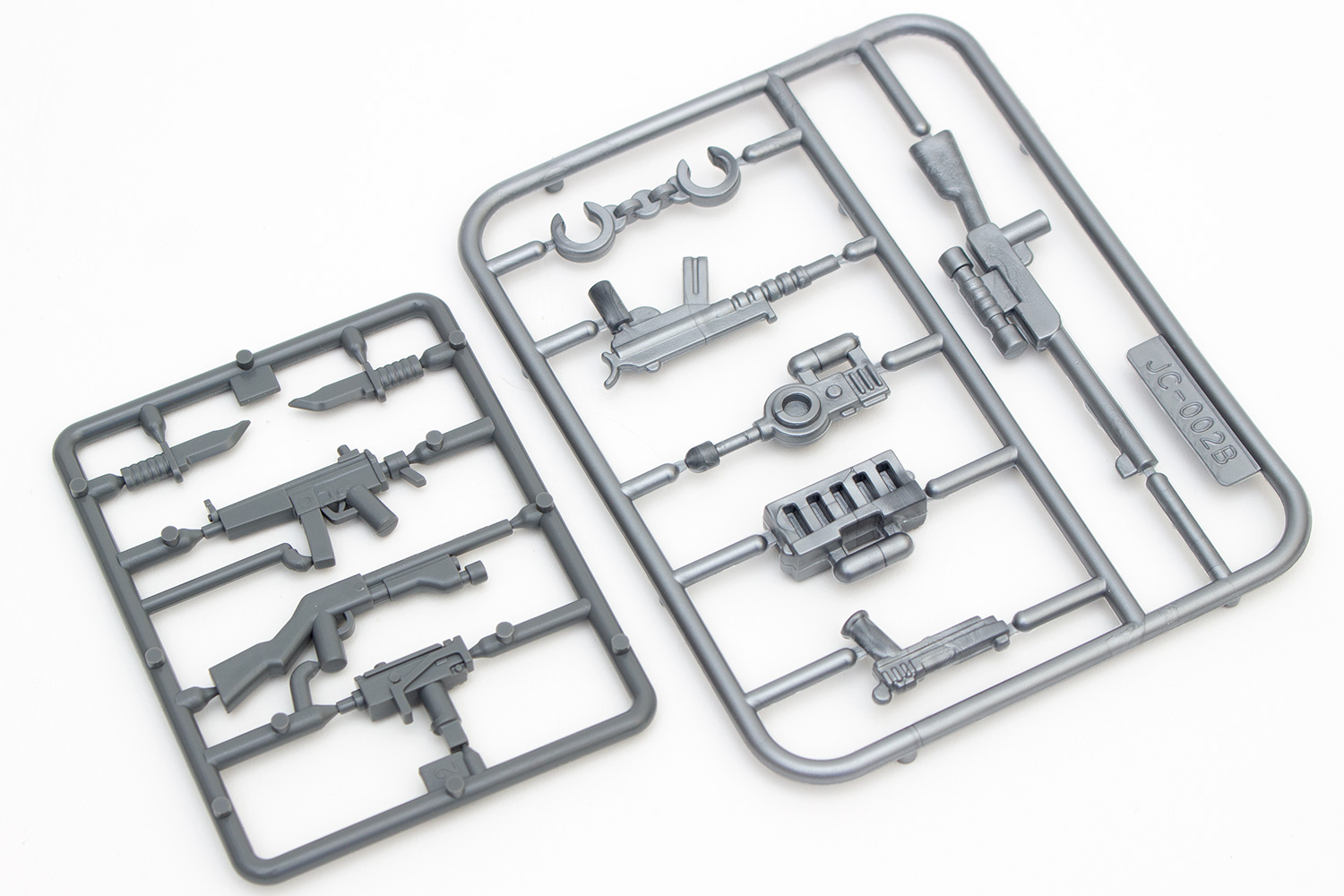Zu dem Set gehören darüber hinaus vier Mini-Figuren, drei Polizisten und ein Verbrecher, welche zwar nicht den „Niedlichkeitsfaktor“ der dänischen Kollegen besitzen, sich aber dennoch gut zum Spielen eignen. Im Gegensatz zum dänischen Marktführer enthält das Set auch Waffen in Form von Sturm- und Scharfschützengewehren sowie Pistolen und Messern. Diese liegen dem Set jedoch nicht frei bei, sondern müssen erst einmal aus dem Gussgitter herausgelöst werden.