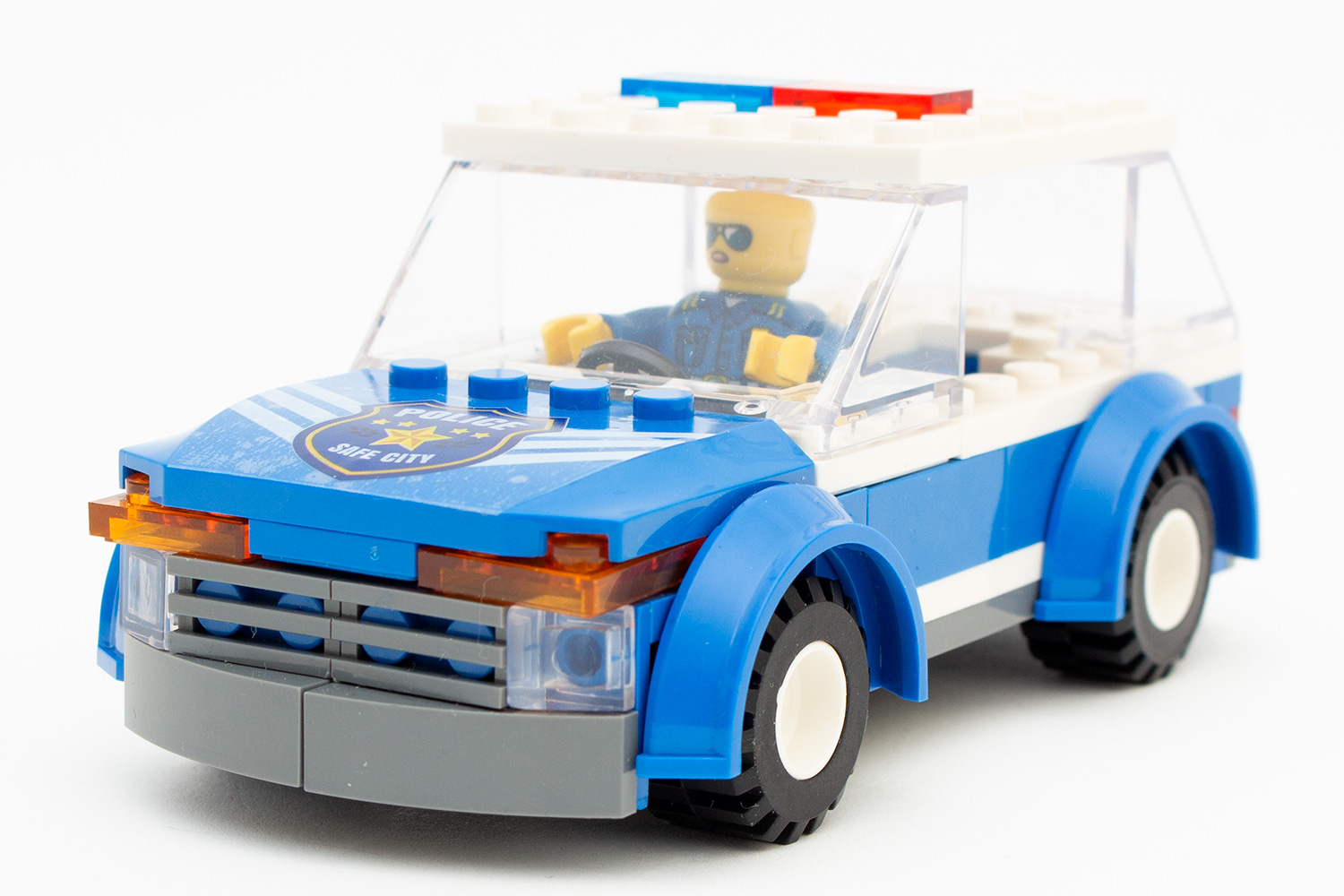 Mit der Polizeistation greift Blocki nicht mehr auf ein Lizenzmodell von Kazi zurück, sondern setzt auf eigene Kreativität. Der Preis, die Steinequalität und besonders die Unversehrtheit der Scheiben überzeugen, den Fahrzeugen hätte dagegen ein wenig mehr Detailverliebtheit gutgetan.