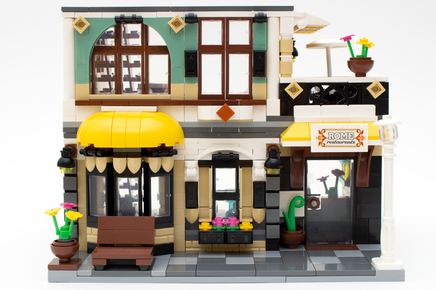 Das italienische Restaurant von Zhe Gao ist ein schönes City-Haus mit modularem Flair, welches sich aufgrund seiner Stabilität ebenso zum Bespielen anbietet. Die Einrichtung hätte jedoch etwas üppiger ausfallen können. Die Teilequalität ist auf einem überwiegend hohen Niveau, besitzt aber dennoch kleine Schönheitsfehler.