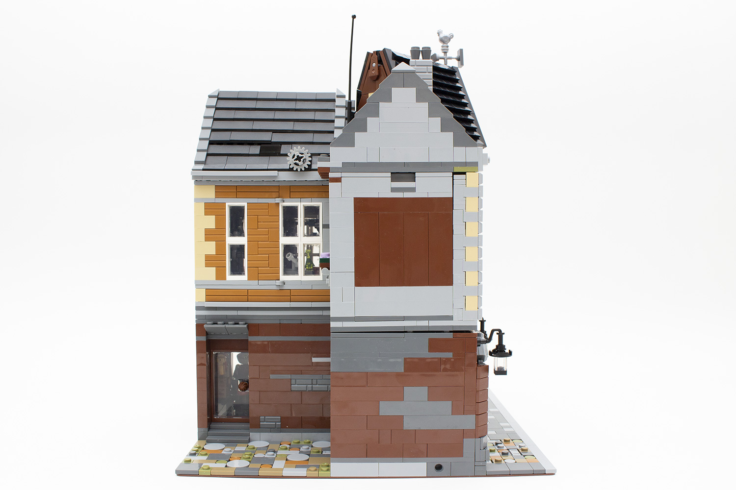 Aber vor allem die grundlegende Gestaltung mit den vielen Verzierungen und der Einrichtung weiß zu überzeugen. Auch die Kombination von traditionellen Baustilen sowie neueren Bautechniken weiß zu harmonieren. Dabei ist der Aufbau stets fordernd, aber immer zu meistern. Die Anleitung erhöht die Anforderungen, in dem viele Bauschritte auf einer Seite gezeigt werden und es daher nicht immer leicht ist, den Überblick zu behalten. Auch dass manche angezeigten Farben nicht mit denen der Steine übereinstimmen, fordert heraus. Anfänger dürften sich sicherlich deswegen das eine oder andere Mal verbauen. Umso größer ist die innere Zufriedenheit, wenn das Set irgendwann fertig vor einem steht. Da können kleine bauliche Fehler verziehen werden, wie der, dass die Puppe mit dem Zylinder nicht wirklich in die Auslage passt – denn alles in allem ist das Modell am Ende ein wahrer Hingucker. Und genau hier liegt das Problem – man muss das Haus verstehen und einordnen können, um das wahre Potenzial zu erkennen.