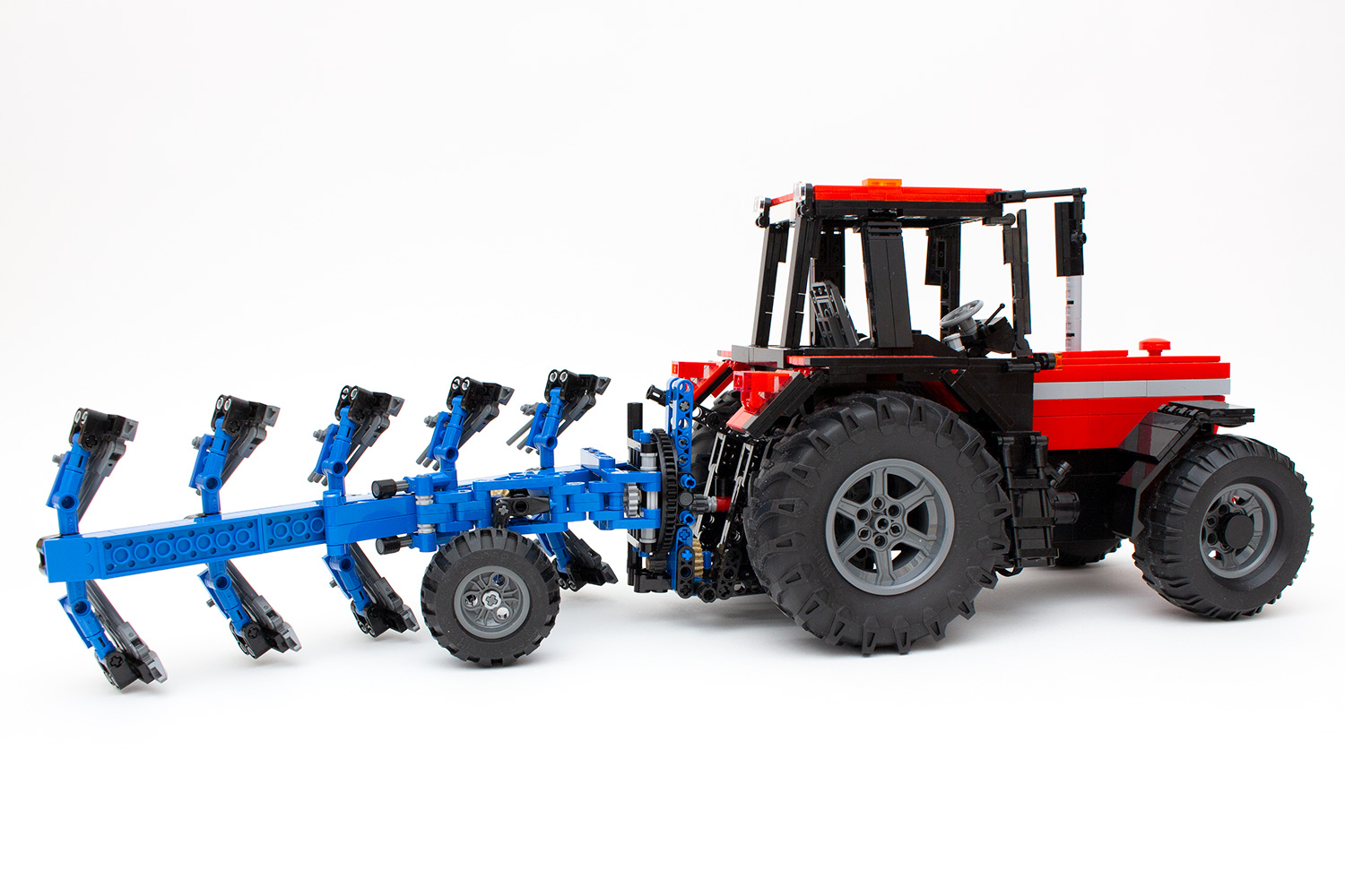 Bei dem Zusammenbau der Gerätschaft dürfte es dem Baumeister wie so oft bei Technikmodellen ergehen – es ist zunächst überhaupt nicht zu erkennen, was jetzt wie gerade gebaut wird. Im Laufe der Zeit sind aber erste Formen erkennbar und das Konstrukt nimmt immer mehr Gestalt an. Der Aufbau gestaltet sich über die restliche Zeit hin einfach, dass sich immer wieder einige der drei Löcher langen 1/3-Liftarme an der Komponente lösen nervt dagegen. Anschließend muss der Pflug nur an den Traktor angeschlossen sowie die Lenkhilfe an die Fernbedienung angebracht werden und schon ist der Traktor samt Zubehör nach rund 8 Stunden fertig.