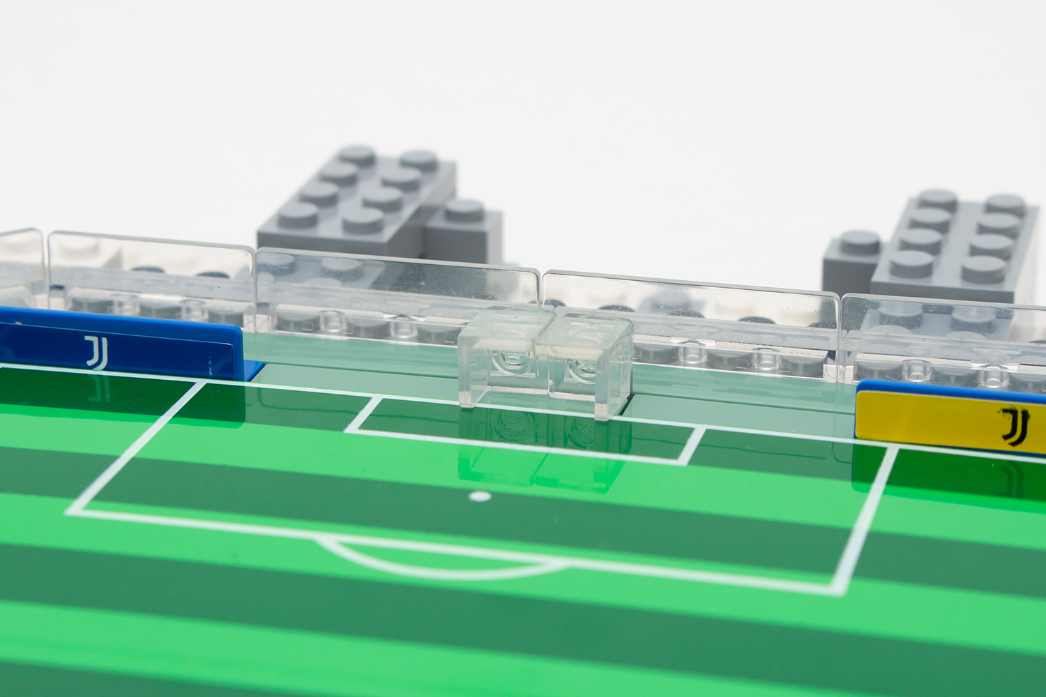 Dieser Umstand bestätigt sich mit dem Allianz Stadium erneut, bei dem sich der Testkandidat im Grunde keine wirkliche Schwäche leistet. Der Aufbau ist fordernd, die Steinequalität sehr gut und auch das fertige Objekt kann mehr als überzeugen. Gleiches gilt für das Spielfeld und die Paneele des Stadiondaches, die alle bedruckt sind. Die über 140 Aufkleber können an manchen Stellen die Nerven der Bauherren etwas strapazieren, vor allem wenn die transparenten Varianten auf weißem Untergrund angebracht werden sollen. Prints wären hier sicherlich eine willkommenere Lösung, die aber nicht ohne einen deutlich höheren Preis zu realisieren gewesen wäre, zumal es Steine gibt, die nur schwer zu bedrucken sind. Die Bauanleitung trägt ebenso ihren Teil zum großen Bauspaß bei, auch wenn hier noch ein wenig Luft nach oben vorhanden ist – manche Sticker sollten vor dem Anklemmen auf die Teile angebracht werden, dann sind die entsprechenden Flächen auch besser zu erreichen.