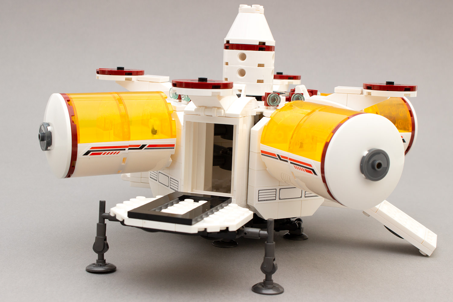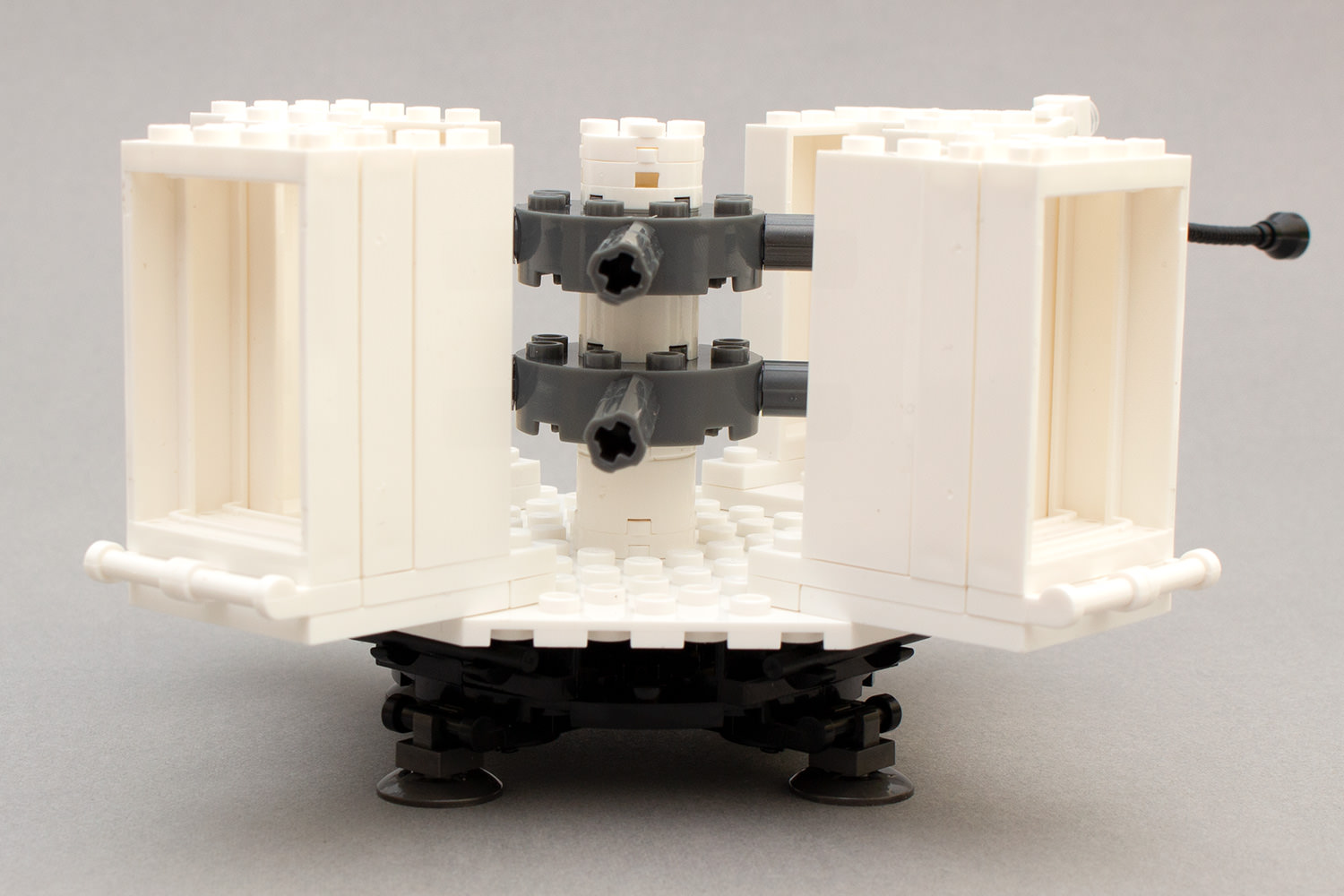 Eine weitere Problemstelle offenbart sich, wenn die zuvor separat gefertigten Stationsräume mit dem Grundgerüst der Basis verbunden werden. An diesen Stellen kann die sich an den Räumen befindliche Achse leicht verschieben oder sich das Verbundteil der Räume komplett ablösen. Auch dieser Abschnitt dürfte für viele Kinder nicht einfach umzusetzen sein. Einen weiteren Schwachpunkt bildet die vordere Rampe, bei welcher die beiden seitlich angebrachten Stützen kaum Gewicht abfedern können, sondern sich direkt verbiegen. Auch hier hätte mehr auf Stabilität geachtet werden müssen.