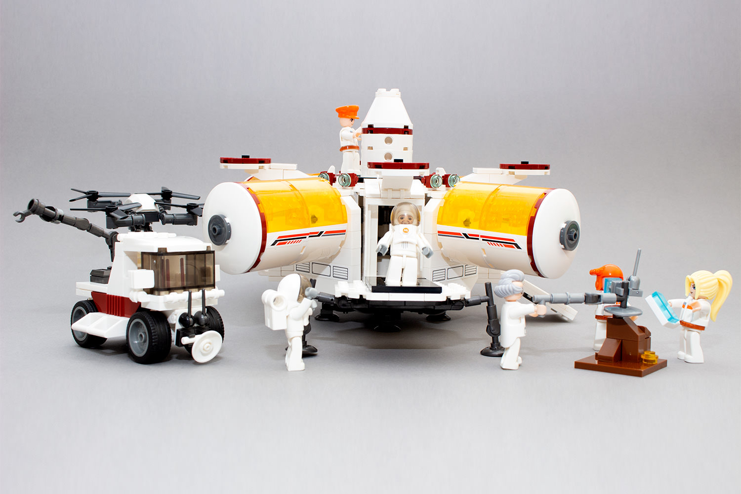 Beim Blick auf das Produktbild auf der Verpackung sollten sich dem Baumeister eh ein paar Fragen stellen: Warum besitzt die Station keine Türen? Und warum tragen die Menschen im Inneren der Station Raumanzüge während andere Wissenschaftler auf der Planetenoberfläche (oder handelt es sich um einen Mond?) ohne Schutzanzug auskommen?