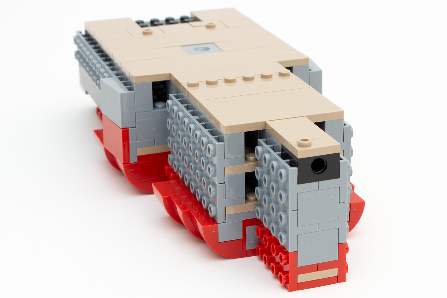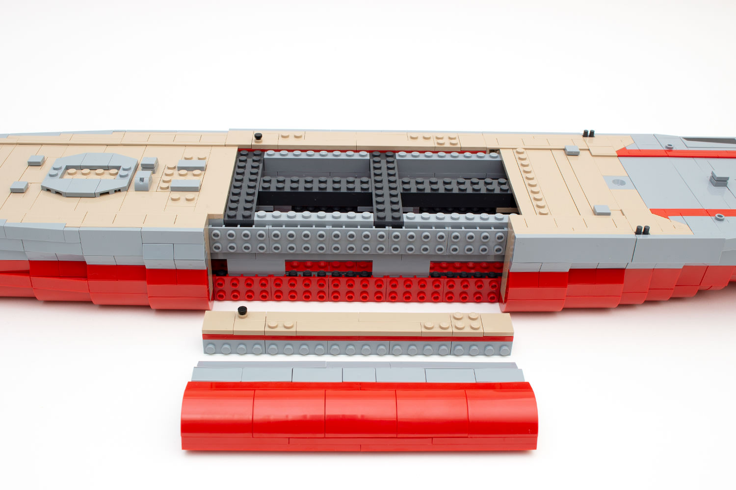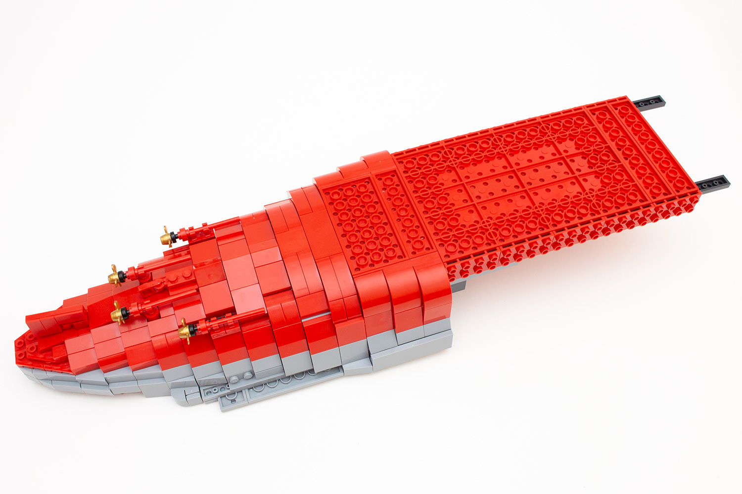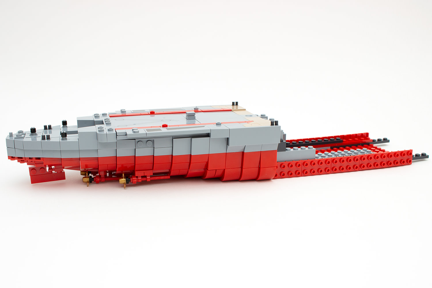 Im Verhältnis zur Rumpfgröße nimmt der restliche Aufbau des deutlich kleineren Oberbaus mit rund drei Stunden mehr Zeit in Anspruch. Auch geht es an dieser Stelle gefühlt deutlich langsamer voran als beim restlichen Modell, da hauptsächlich kleine Teile verbaut werden. Zu diesem Zeitpunkt kommen auch zum ersten Mal in großer Zahl die beigelegten Prints zum Einsatz, bei deren Einbau auf die richtige Ausrichtung geachtet werden muss. Zudem muss ständig genau in die Anleitung geschaut werden, da sich sonst schnell verbaut werden kann.