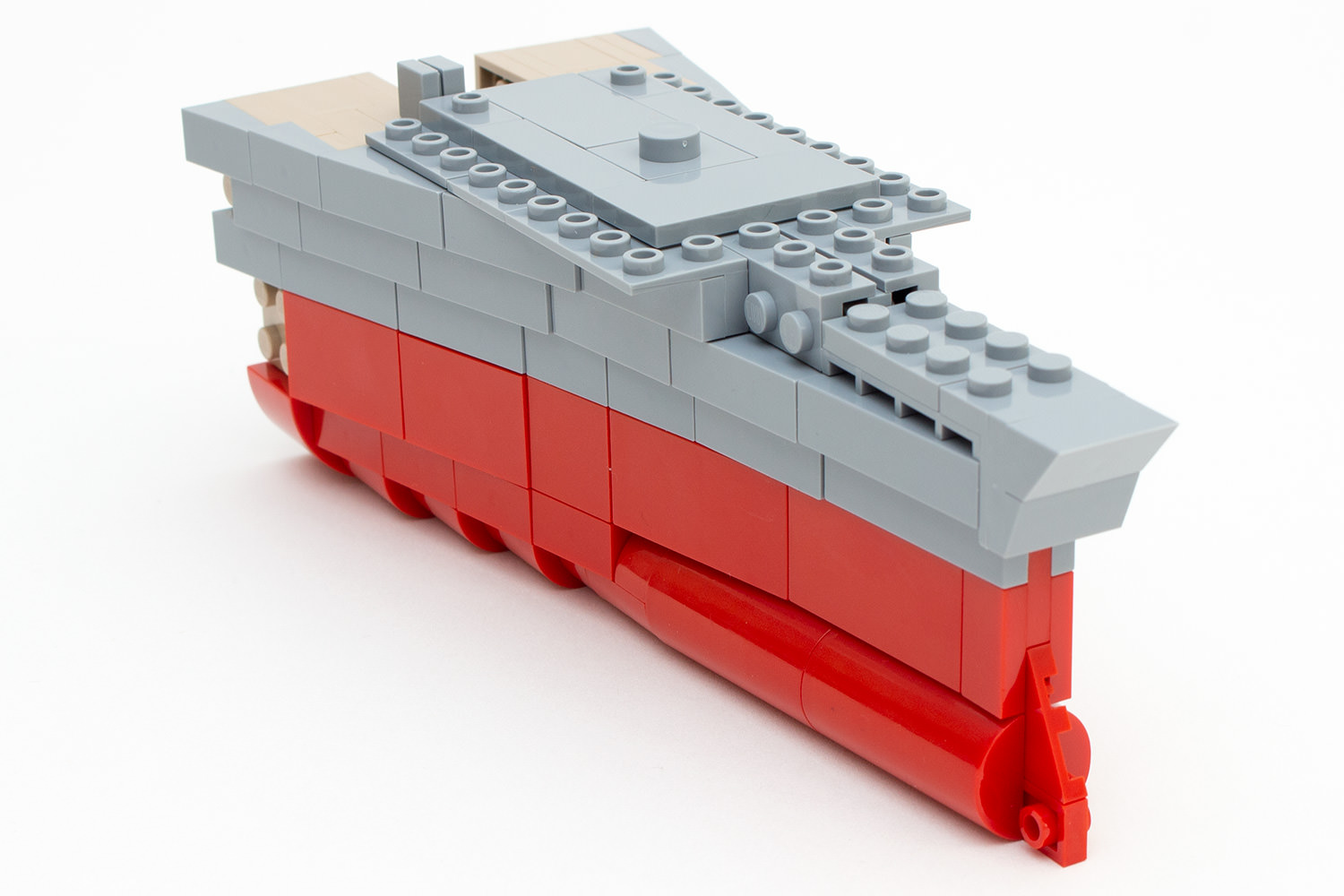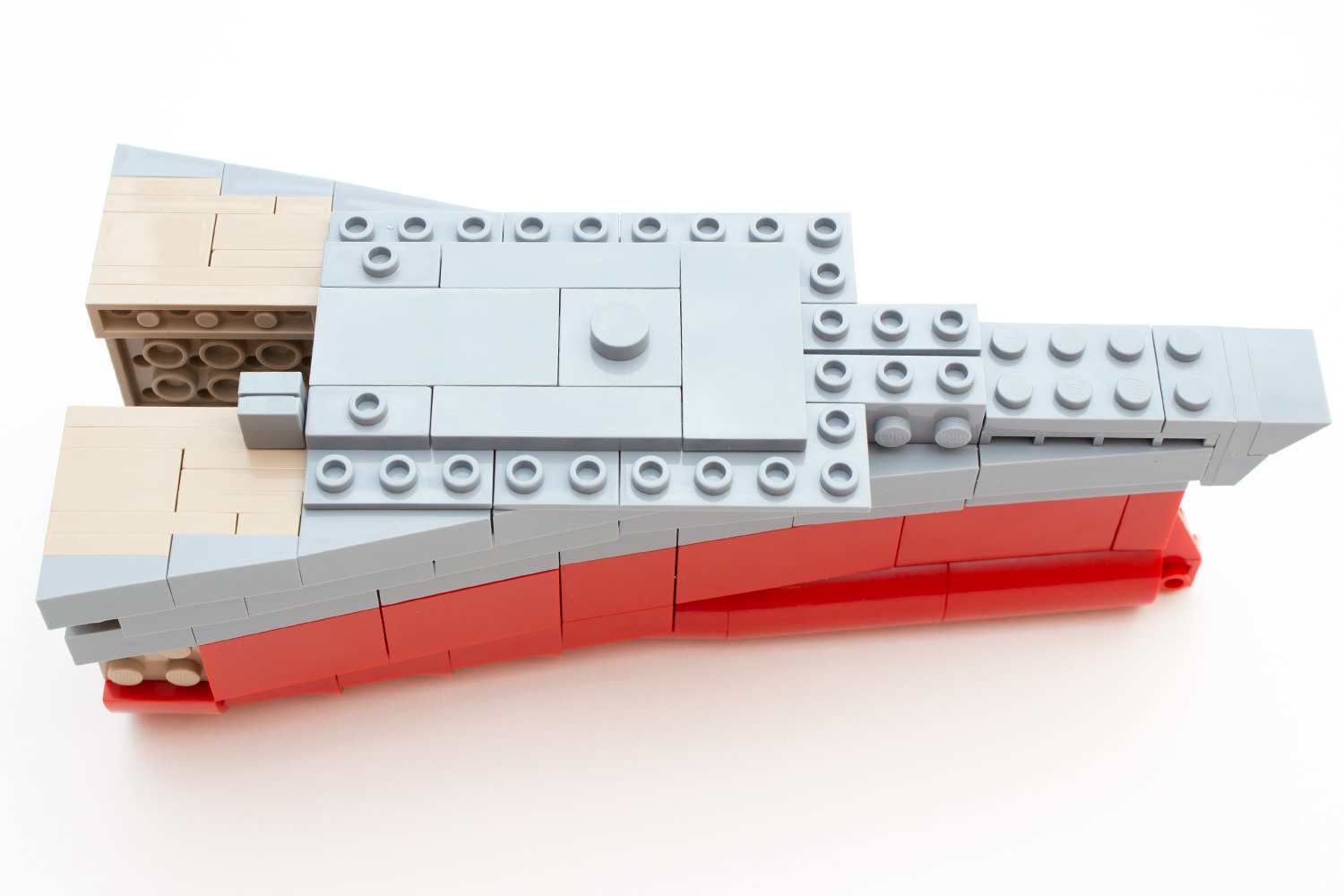 Auch die Motivation bleibt während des gesamten Bauvorhabens stets erhalten. Das liegt nicht zuletzt daran, dass mit jedem neuen Seitenteil das Schiff immer mehr Gestalt annimmt. Wie hoch die Klemmkraft der Steine von Cobi ist, wird auch daran deutlich, dass gerade bei den Seitenteilen oftmals ein größerer Kraftaufwand zur Befestigung am Rumpf nötig ist. Dieser Umstand stellt aber keine Gefahr dar, da der Korpus des Modells bereits jetzt schon so stabil gefertigt ist, dass dieser einen noch höheren Druck ohne auch nur einmal zu knarzen übersteht.